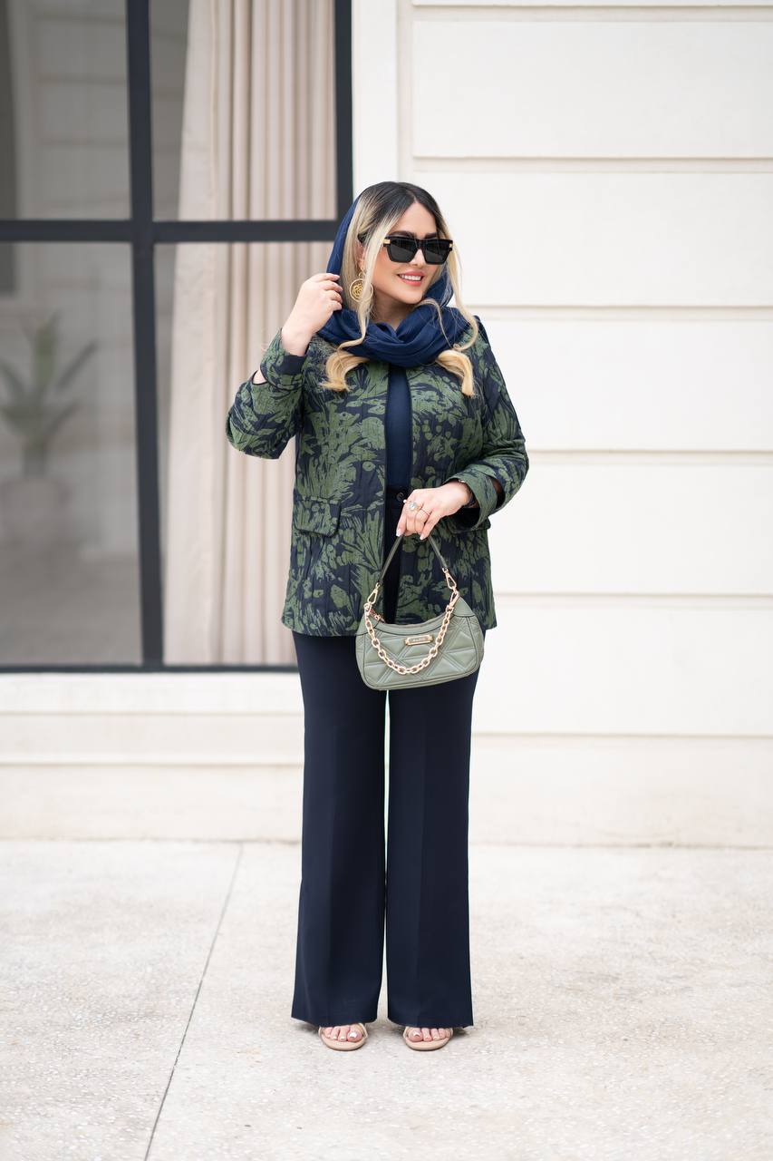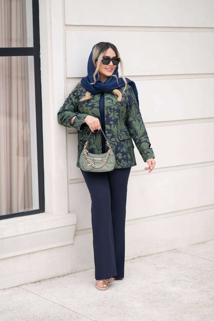 رنگ شیک و بهاری لنا 😍🤌🌱سرمه ای و سبز ترکیب رنگ برنده که استایل رو بینهایت شیک نشون میده و اندامتون رو ظریف تر