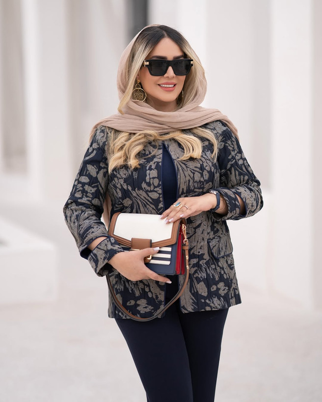 عاشقان رنگ سرمه ای که یه استایل فوق العاده شیک با کت ژاکارد میخواین لنا من به شماست ———————————————